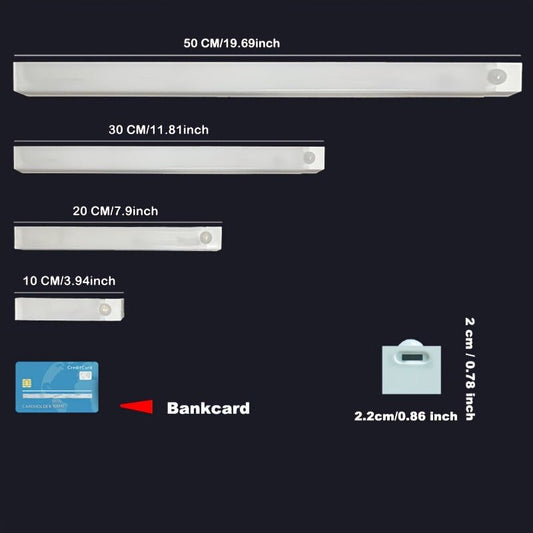 Rechargeable Motion Sensor LED Light Strip with Human Body Detection, Magnetic Adhesive & USB-Powered Smart Lighting - Cordless Floor/ Ceiling/ Wall Light for Kitchen, Wardrobe, Stairs, Hallway - Energy-Efficient LED Tube Lig